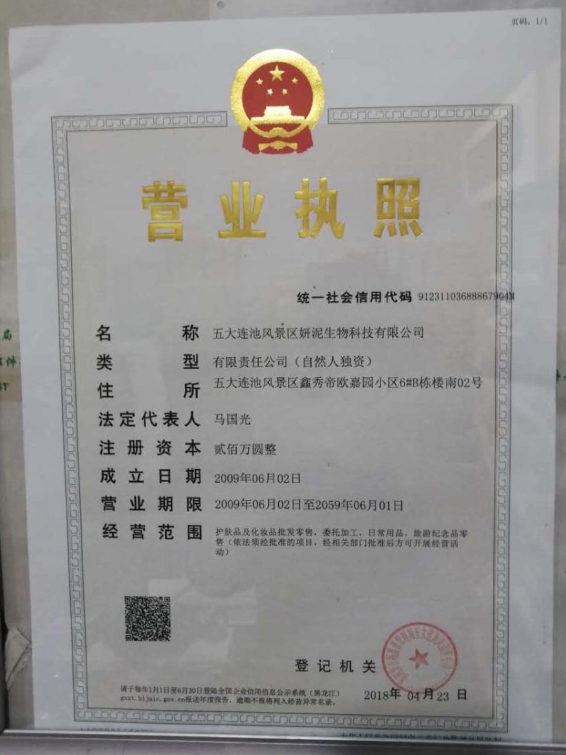 五大連池風景區妍泥生物科技有限公司成立于2009年6月,前身是雙鴨山市太平洋實業(yè)有限公司(成立于1989年),2013年更名為五大連池風景區妍泥生物科技有限公司。